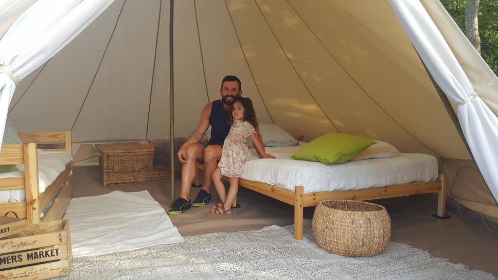 Nous proposons plusieurs types d’hébergements insolites : des tipis pouvant accueillir jusqu’à 4 personnes, des tentes safari pour 5 personnes, et des mini tentes safari pour 2 personnes. Chaque hébergement est équipé d’une kitchenette avec réfrigérateur, plaque de cuisson, machine à café et bouilloire.