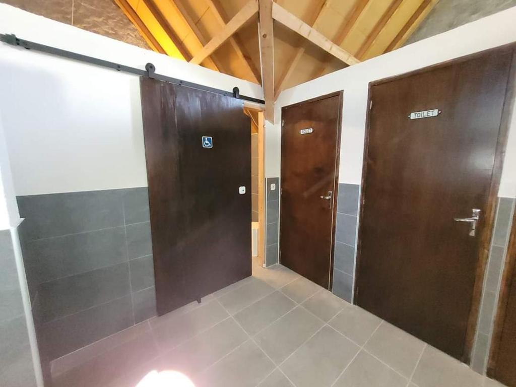 Les sanitaires sont partagés. Un bloc sanitaire commun est à disposition des visiteurs, comprenant des toilettes et des douches avec eau chaude.