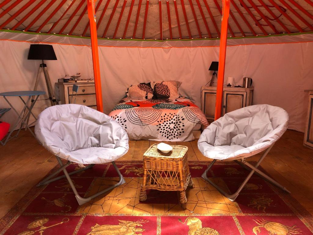 La yourte peut accueillir jusqu’à 4 personnes avec un lit double et un canapé-lit. C’est idéal pour un couple, une famille ou un petit groupe d’amis.